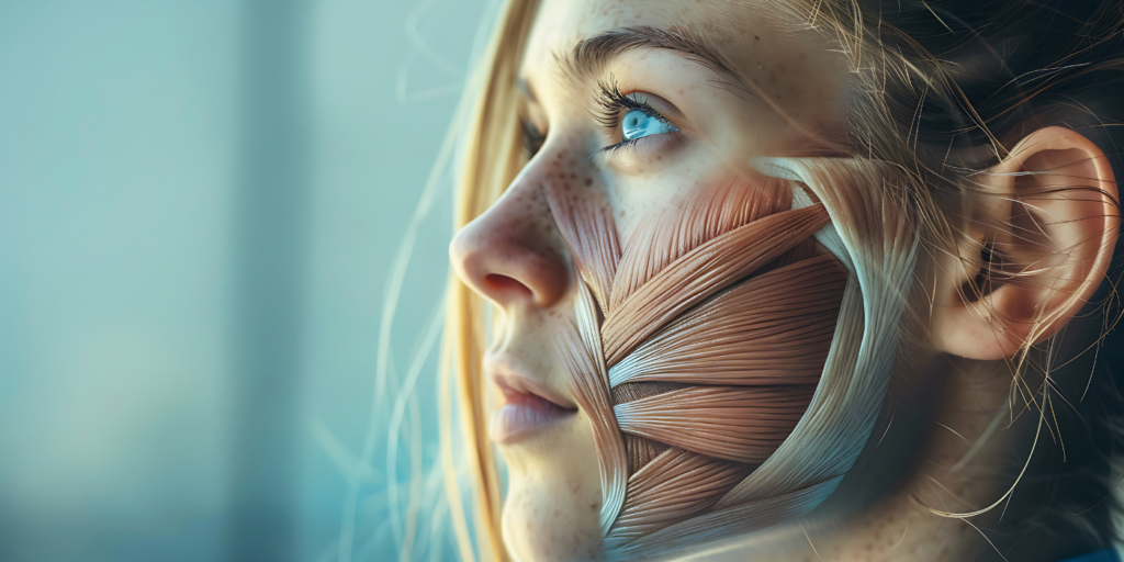 Modern daily life repeatedly activates the fight-or-flight response. When this happens too often, facial muscles remain partially contracted – especially the masseter and temporalis muscles involved in chewing- and emotional stress patterns are affected.